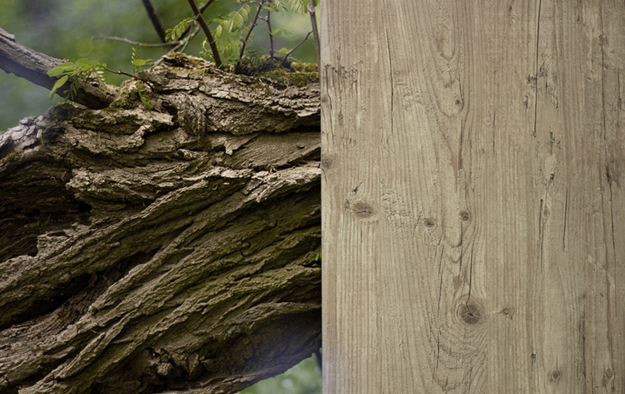 Die Natur bot viele Optionen Holzdekore in Szene zu setzen. Für ausgefallene Dekore, wie 'Light Orange' oder 'Rost' musste spezielle Szenerien aufgebaut werden.
